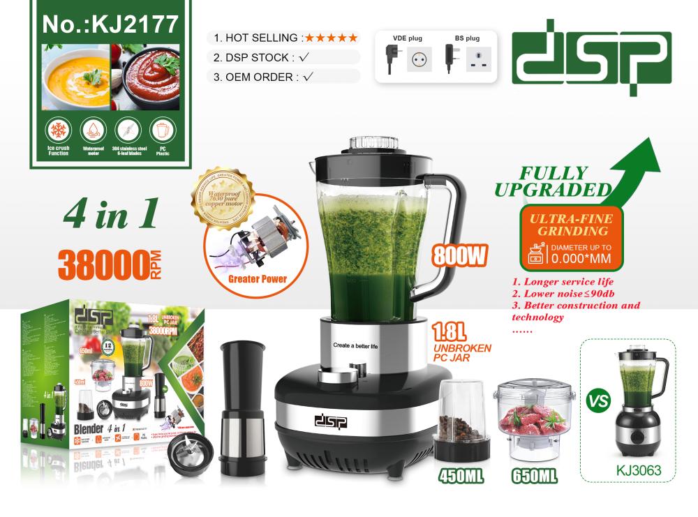 خلاط 4 في 1 الجهد: 220-240 فولت ~ 50/60 هرتز الإخراج: 800 وات محرك نحاسي نقي 7630 سرعة الدوران: 23000 دورة في الدقيقة سكين فولاذية 304 بستة شفرات محرك...